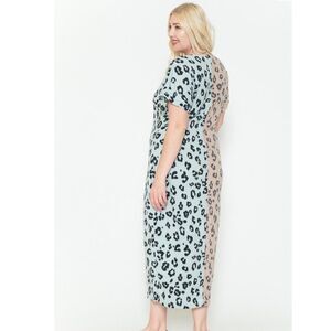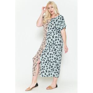 Leopard Front Slit Dolman Sleeve Maxi Dress Plus Size 2X