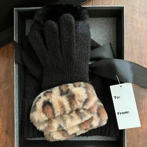 Add a touch of sophistication to your wardrobe with these black gloves detailing leopard faux fur trim and classic ribbed knit beanie with faux fur pom. A stylish combination of warmth and luxury in a beautiful gift box. Ready for gifting or treat yourself!