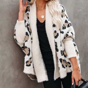 Leopard Fuzzy Oversized Cardigan Knit Sweater