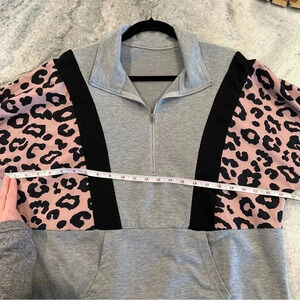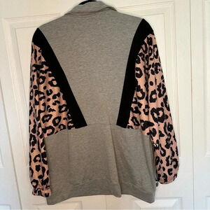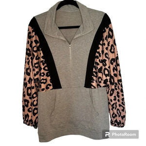 Leopard Gray & Black Quarter Zip Pullover with Pockets Relaxed Fit Size Large