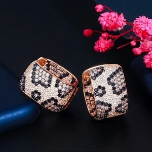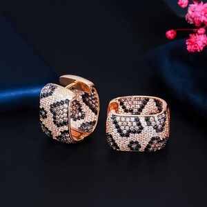 Unique, Beautiful and Chic! These Rectangular Hoop Earrings glisten and sparkle with Black, Champagne and Clear Cubic Zirconias (CZs), prong set in 18K Yellow Gold over Stainless Steel. Embrace & express your "Wild Side" in fashionable elegance!
