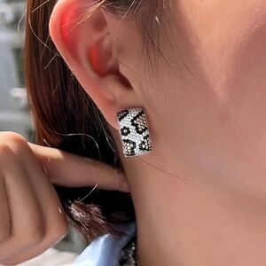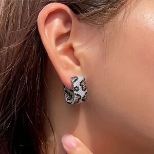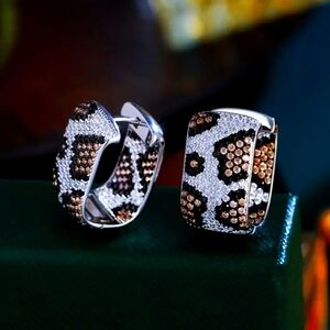 Unique, Beautiful and Chic! These Rectangular Hoop Earrings glisten and sparkle with Black, Champagne and Clear Cubic Zirconias (CZs), prong set in Sterling Silver over Stainless Steel. Embrace & express your "Wild Side" in fashionable elegance!