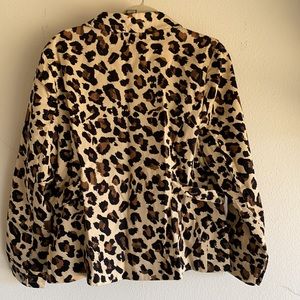 Light weight leopard print jacket. Front side pockets. Button front closure. Fitted. Smoke & pet free. No snags or stains. Adorable with jeans & boots.