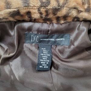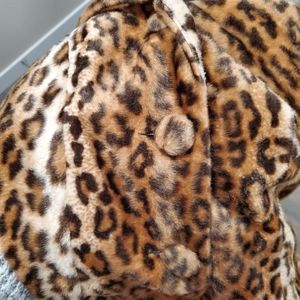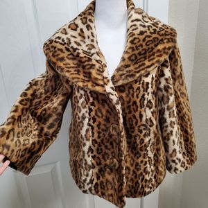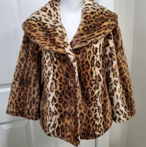 Leopard Faux Fur Jacket, with cropped sleeves and furry buttons.