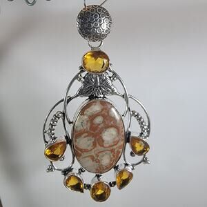 Tags: Gemstone, Artisan, Sterling Silver, Handmade, Leopard Jasper, Citrine, Pendant Necklace