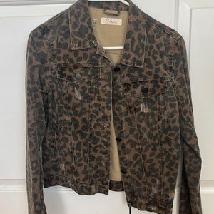 Leopard Jean Jacket with some distressing. Size medium. Button enclosure. 2 side pockets. Worn once