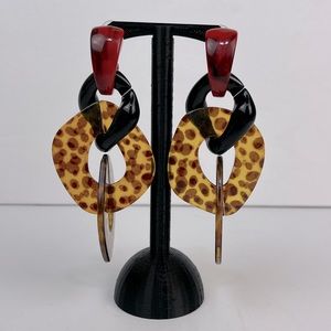 🆕 Leopard Link Earrings with Balck/Red Accents NWT Fab Vintage Look