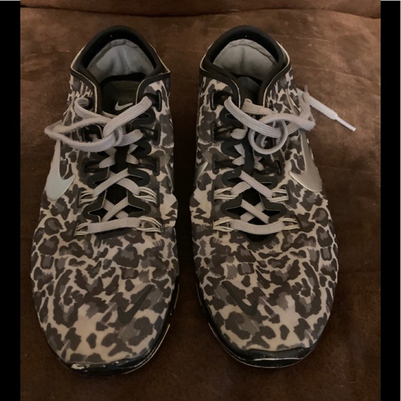 Leopard Nike tennis shoes. Some wear and tear, as seen in pictures.