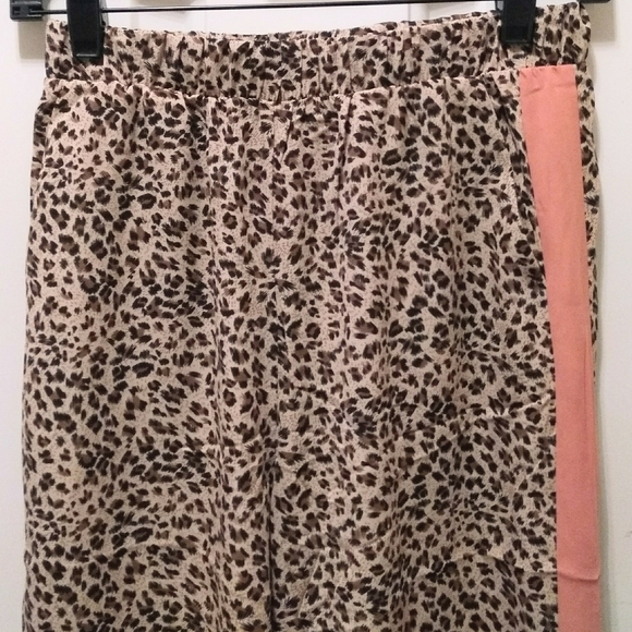 NWT - Excellent Condition; Discreet Side Pockets; Leopard Print; Coral Pink Stripe; Elastic Waist Band - Stretch; No Lining on Inside; Excellent Material