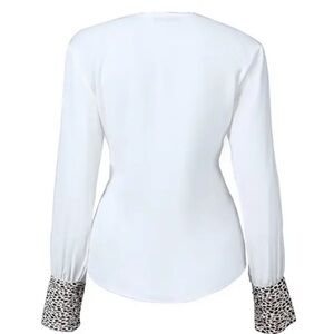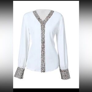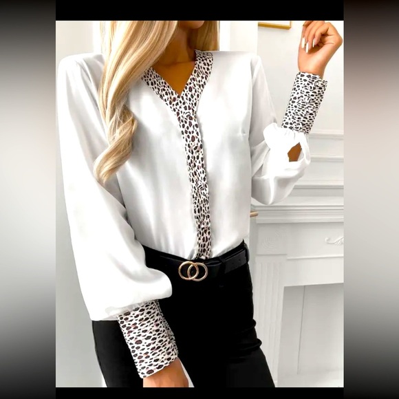 Leopard Patch Lantern Sleeve Button Front Top, career, night out and formal