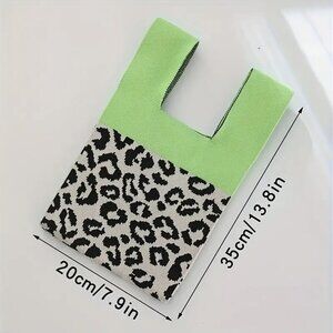 Leopard Pattern Colorblock Small Knit Tote Bag