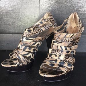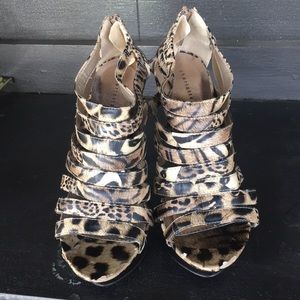 Leopard print heels from Charlotte Russe. Light wear on the toes as seen in pictures. Heel is clean. Zipper fastener in the back. 5” heel