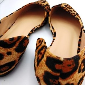 Check out this Leopard Pattern, Round Toe, cushioned insole, rubber outsole material flats, made out of a fuzzy suede upper materials.