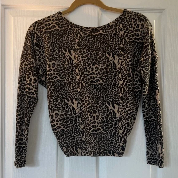 Chic leopard patterned long sleeve top. Cute knot detail can be worn in the front or in the back. Ideal for everyday wear.