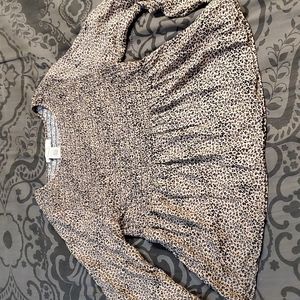EUC! flattering, lightweight peplum top with leopard print. 100% rayon. ruched top area. very cute with jeans or leggings! comfortable. message me with any questions or make me an offer! worn twice to work.