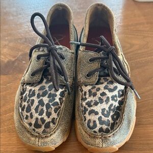Fun moccasins with leopard print. Brown laces and trim. Comfortable and stylish.