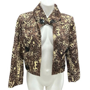 Grace Elements Leopard Print, Cropped Stylish High Collar Big Button Jacket Blazer, Size 8 ~ Excellent condition