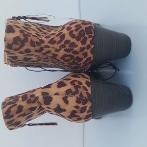 Step out in style with these chic leopard print ankle boots. Perfect for adding a bold touch to any outfit.