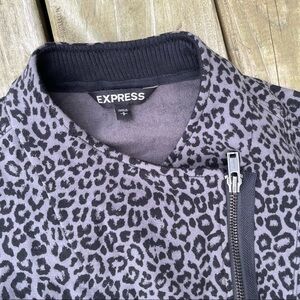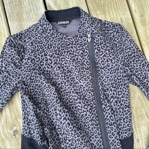 Leopard Print Asymmetrical Zip Moto Sweater Jacket Size S