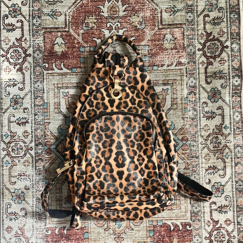 Stylish leopard print backpack perfect for any occasion. Features a bold design that stands out. Ideal for adding a touch of wild elegance to your outfit.