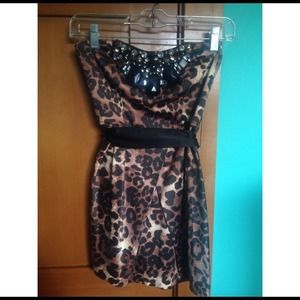 Leopard Print Bedazzled Homecoming/Cocktail Dress
