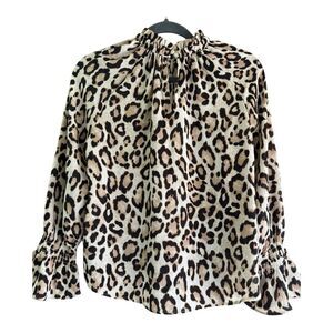 Leopard Print Bell Cuff Blouse Size S