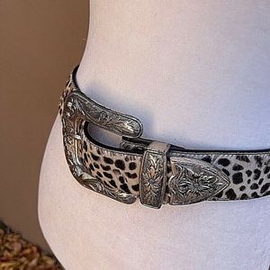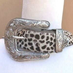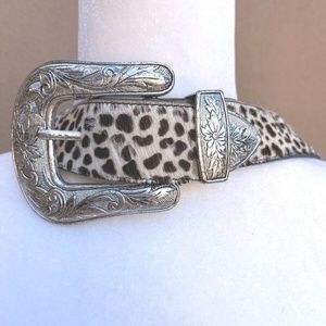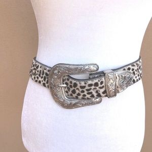 Leopard Print Belt with Silver Buckle