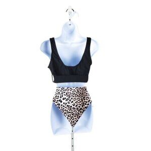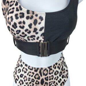 Leopard Print Belted Bikini Two Piece Swimsuit Tan and Black Size Medium