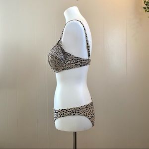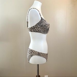 NWOT. Top has underwire and padding. Also adjustable straps and four notches to tighten/loosen in the back. The bottoms low rise and are size medium and pretty true to size. Only tried on once, never worn out.