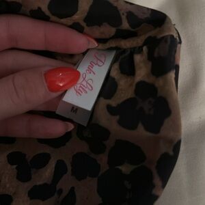 Stylish leopard print bikini set. Features a bandeau top and high-waisted bottoms. Perfect for a bold beach look.