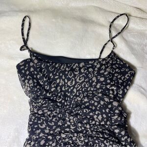 Leopard Print Black Spaghetti Strap Bodycon Mini Dress