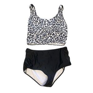 Leopard Print Black & White Bikini Set Women’s Large - Lightly Padded Top