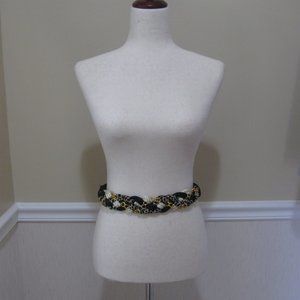 Leopard Print Braided Stretch Cord Belt Black White Gold Chain fits 36-44" waist
