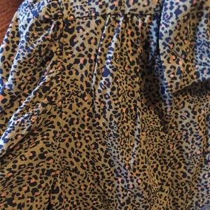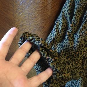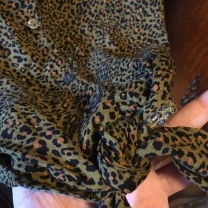 Button down with tie in front. Elastic cuff sleeves. Super cute. Too small for me. Olive 🫒 tone with black print