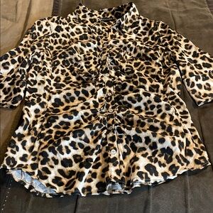 Leopard Print Button-Up Blouse