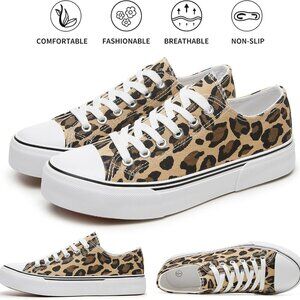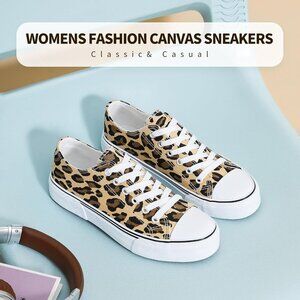 Step out in style with these chic leopard print canvas sneakers. The bold pattern and crisp white details make them a versatile choice for any casual occasion.