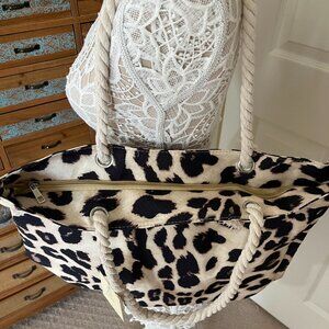 Leopard Print Canvas Tote Bag/ Double Rope Handles - Tan/Black/Brown - Style 1 -NWT