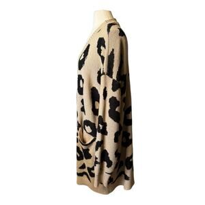Leopard Print Cardigan Sweater Size XL Pockets Button Front Modern Long Length
