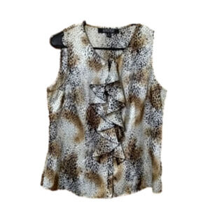 Leopard Print Career Top From Day to Evening Ruffled Front Kasper Size M NWOT Satiny Smooth