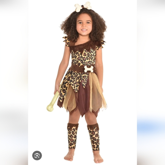 Leopard Print Cave Girl Kids Costume with Brown Details - NWT 3-4