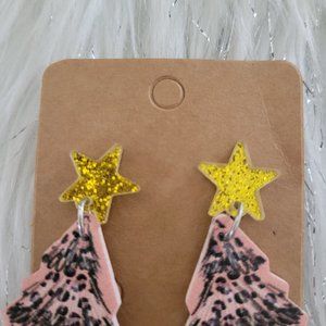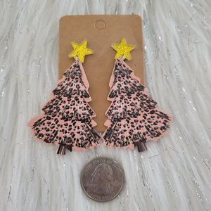 Leopard Print Christmas Tree Earrings