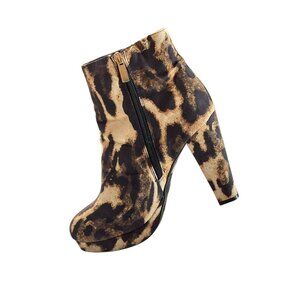 Leopard Print Chunky Heel Ankle Boots By Bamboo Size 9 Faux Suede Side Zip Cl