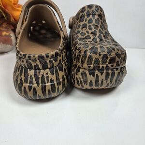 Stylish leopard print clogs. Perfect for casual wear.A fashionable new animal print provides extra style to the iconic clog that started a comfort revolution,