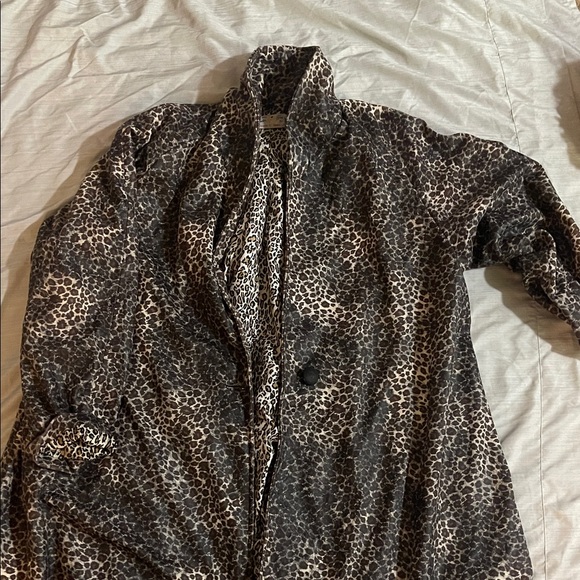 Stylish leopard print coat with button closure. Perfect for adding a bold touch to any outfit.