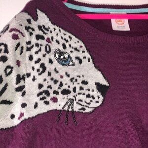 Leopard Print Color Block Knit Sweater Xl Burgundy Purple White Animal Print
