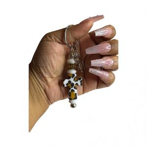 Stylish keychain with a leopard print cross and bead accents. Perfect for adding flair to your keys or bag! And of course, it's handmade!!