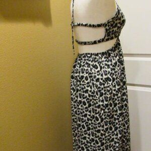 This chic maxi dress dazzles with its playful leopard print and breezy flow. The daring deep V cut-out brings a flirty edge, ideal for turning heads at any event. Crafted from lightweight fabric, it keeps you comfy and cool, while the flowing shape flatters every figure with effortless style.
