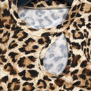 Stylish leopard print top with a trendy cut-out design. Perfect for a bold fashion statement. 19 inches from one armpit to the other. Sexy but doesn’t show too much.