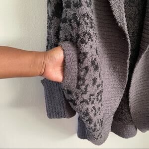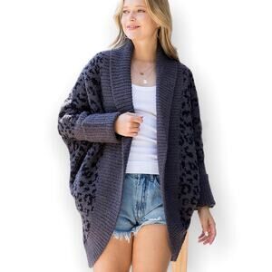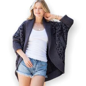 Leopard Print Dolman Cardigan Womens Black Charcoal Fuzzy Lounge Cozy Sweater