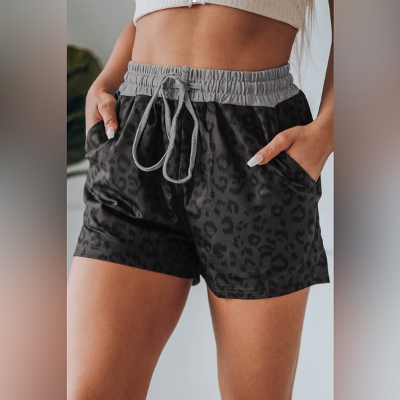 💫 Leopard Print Drawstring Waist Shorts with Pockets
